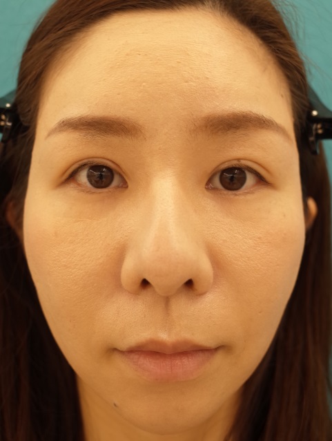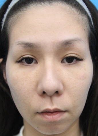 額・こめかみ・ほうれい線・頬、あごにヒアルロン酸を注入しました。 額に丸みが出てやわらかい印象になり、こめかみや頬のへこみがなくなったため逆卵型の輪郭に近づき、 全体的にリフトアップした印象になりました。 また、ほうれい線が目立たなくなり若々しい印象になりました。