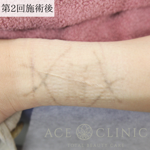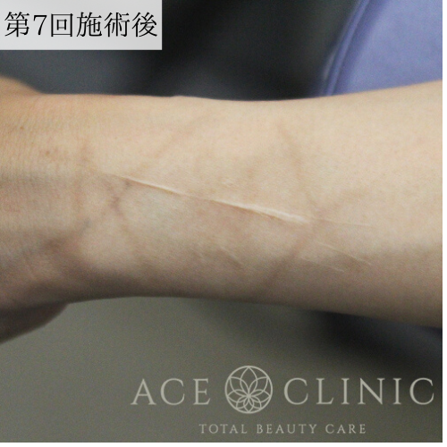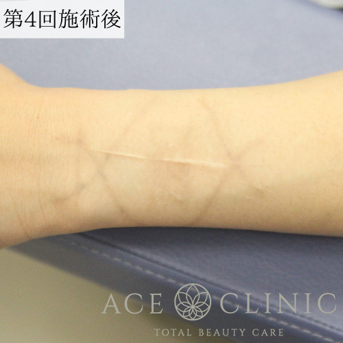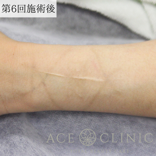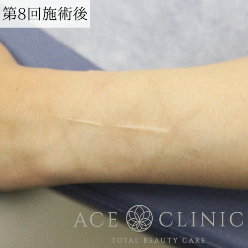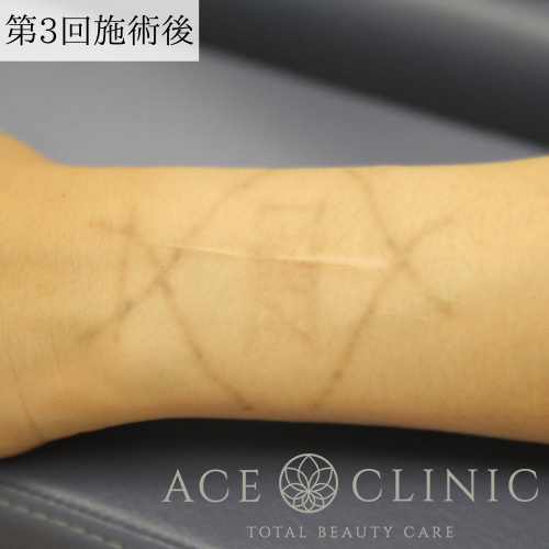 黒一色、前腕の刺青のレーザー除去を行いました。6回でほぼ色素は取れておりましたが、希望により合計8回の照射を行いました。