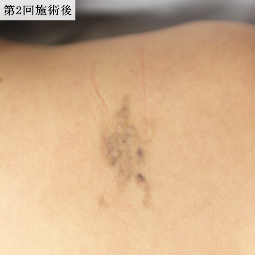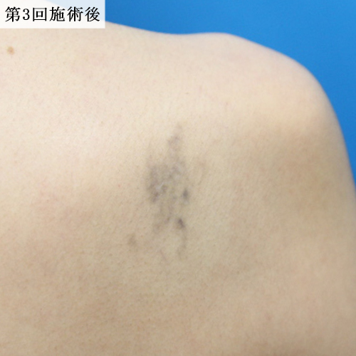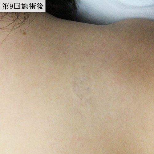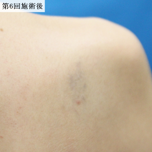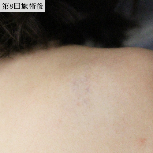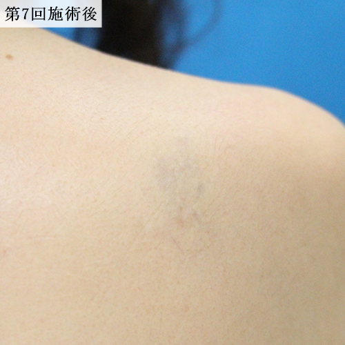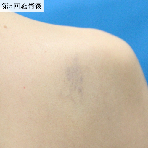 黒一色の肩のタトゥーをレーザーで除去しました。ほとんど6回で消えていましたが、よりしっかりと色素を落とすために合計10回照射しました。