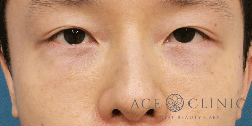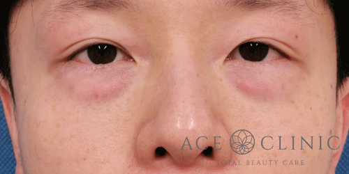脱脂CRF法にて目の下のクマ治療。眼窩脂肪の突出によるふくらみを切除し、へこんでいる部分にしっかりめに脂肪を注入しました。