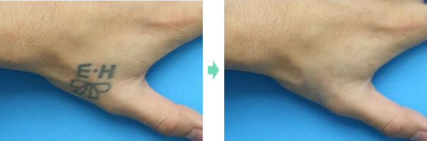 黒一色のタトゥー。自分で墨汁で入れたもの。 レーザーにて除去しました。