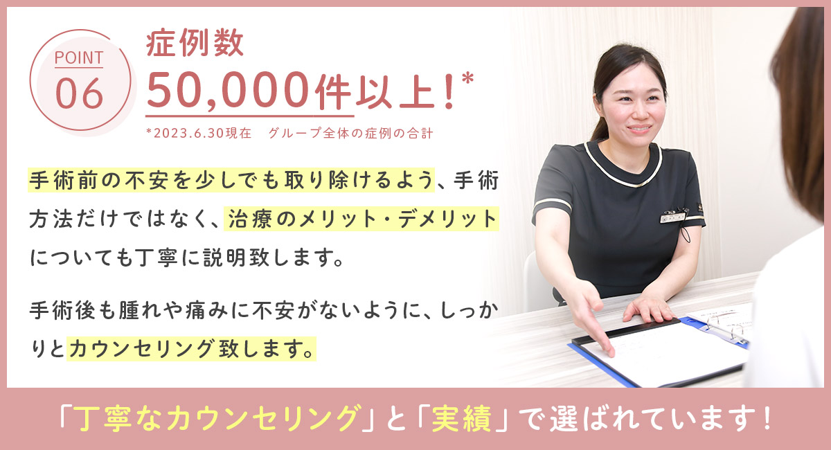 当院は医師が、丁寧なカウンセリング、患者様の個性を生かす繊細な技術力、細心のケアで大切な目元をより美しく輝く「二重まぶた・目元へ」のご提案を致します。
