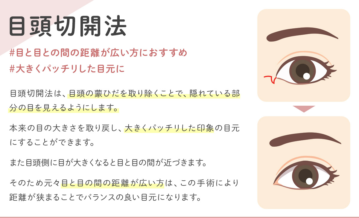 目頭の蒙古ヒダの状態がポイントになります。平行型の二重を作るにはある程度幅の広い二重が必要になることが多いです。そのときに、蒙古ヒダのつっぱりが強い方の場合は不自然なラインが入ってしまうことがあります。その場合は目頭切開を併用すると問題が解決することがあります。具体的な事は診察をさせて頂いてからになりますので、よろしければ一度診察を受けてください。