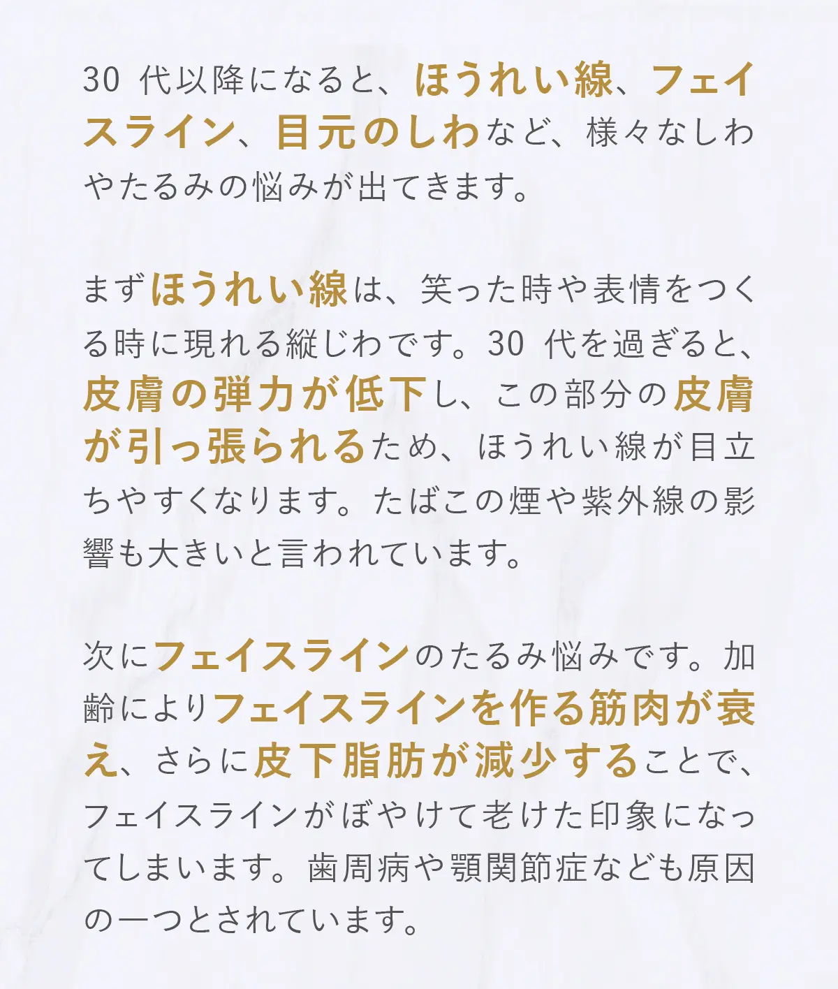 エースクリニック大阪梅田HEPナビオ院は、しわ・たるみなどのエイジングケアに特に力を入れています。加齢によるお肌の変化は避けられませんが、適切なケアでその進行を大幅に抑えることができます。