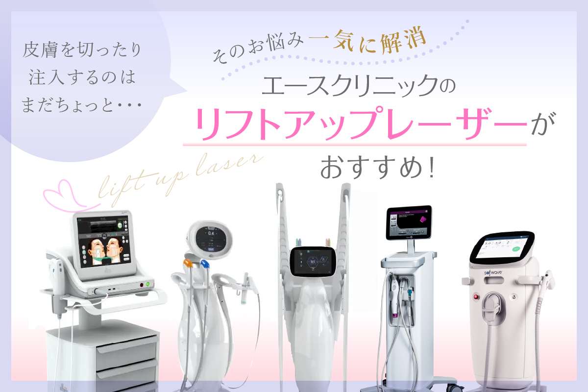 長年の経験と実績から、お客様一人ひとりの肌質やお悩みに合わせた最適なエイジングケア方法を提案できるのがエースクリニック大阪梅田HEPナビオ院の強みです。レーザー治療をはじめ、注入療法、機器を用いた施術など、さまざまな治療メニューを用意しています。