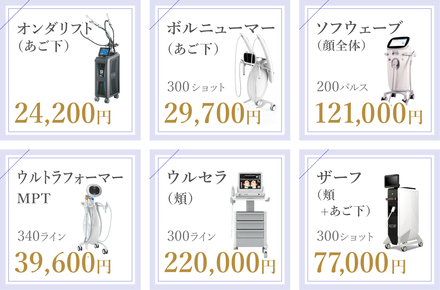 | あご下(100ショット) | 29,700円 |