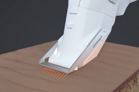 ・ニードルが斜めに進入することで、皮膚の浅層から深層までをなめらかに貫通。